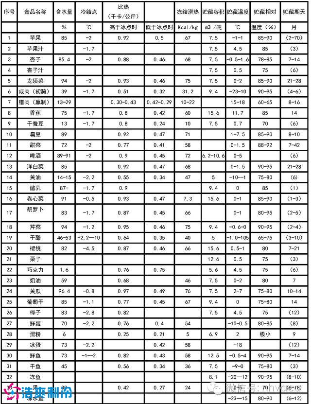 以下為食品冷藏保鮮溫度參數(shù)表(僅供參考)